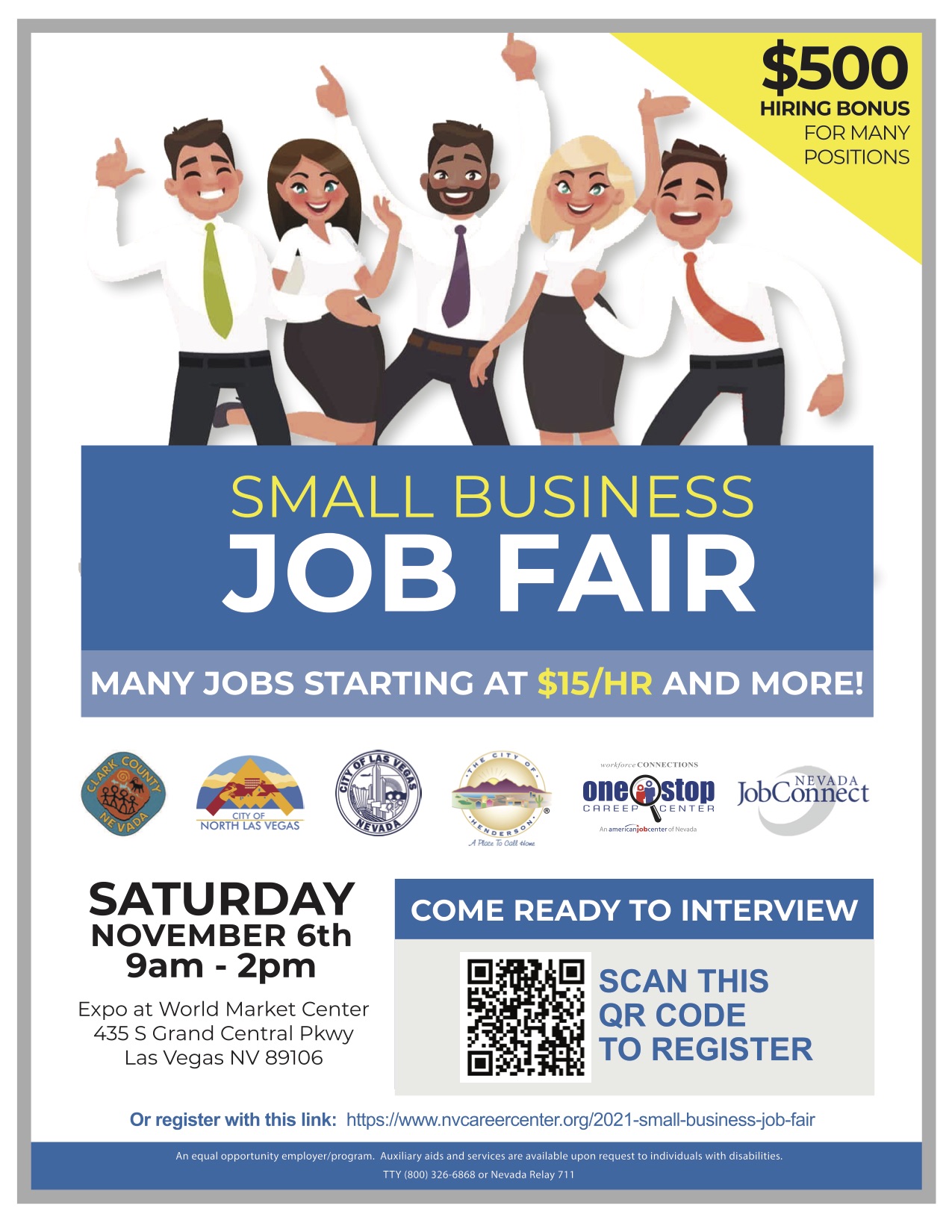 Las Vegas Global Economic Alliance On Twitter The Small Business Job Fair Is This Saturday 11 6 From 9 Am To 2 Pm Many Of The Jobs Start At 15 Hour And