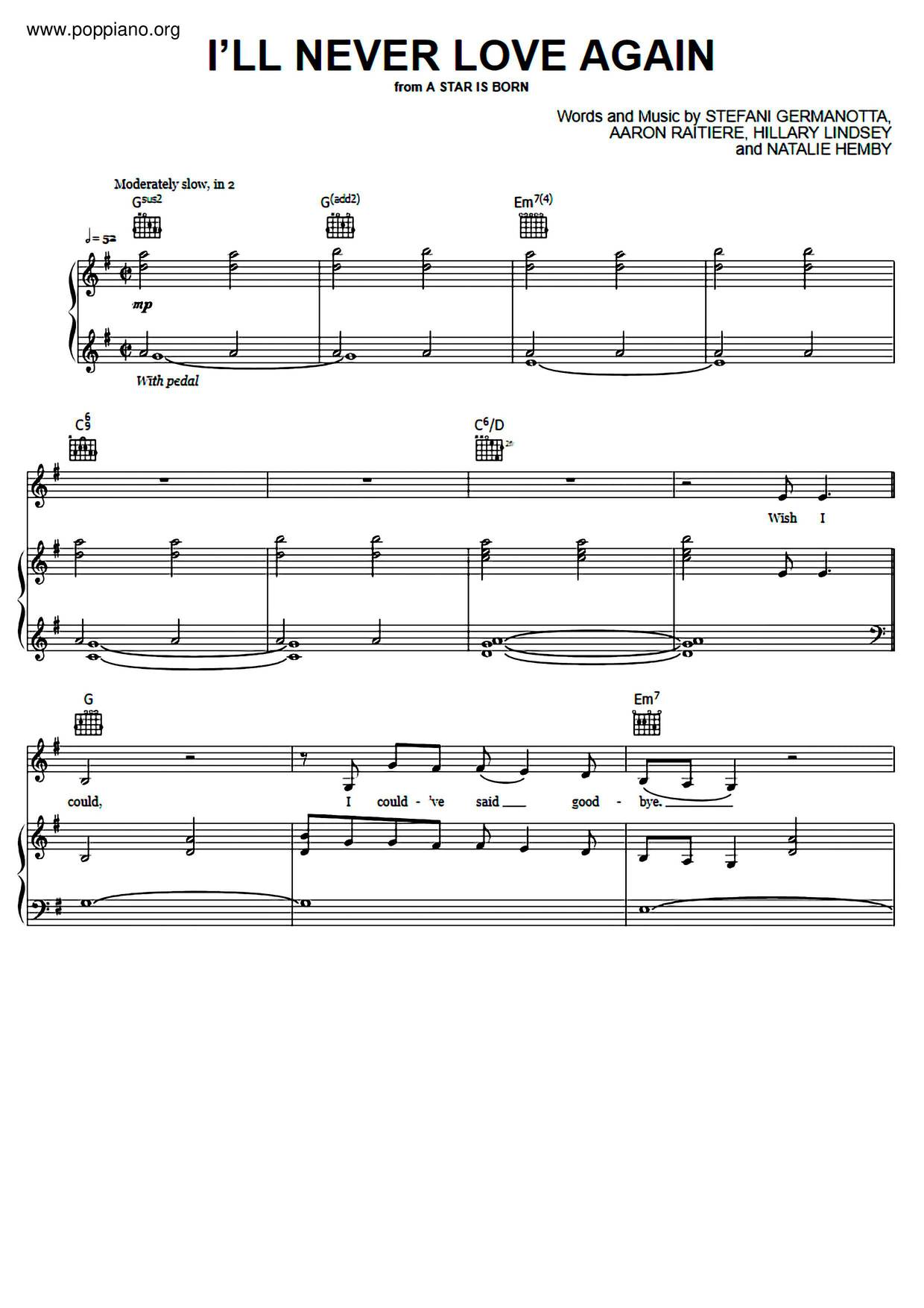 Lady Gaga I Ll Never Love Again Sheet Music Pdf レディー ガガ Free Score Download