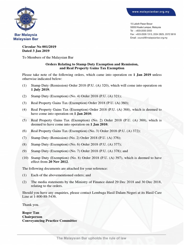 stamp duty exemption malaysia 2019